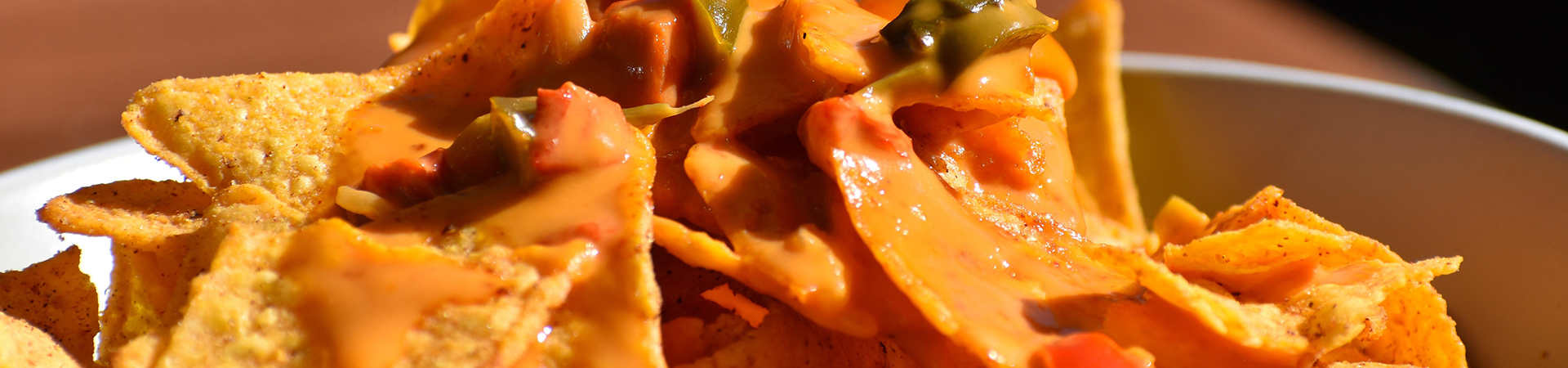 Yellow corn tortila chips,lamb, tomato salsa , sour cream , guacamole , sliced jalapino,black olives