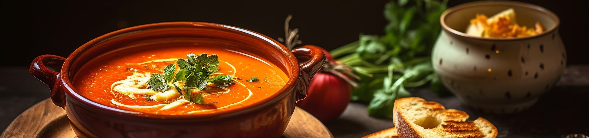Fresh tomato soup cooked with a lush flavour of fresh Indian herbs and spices