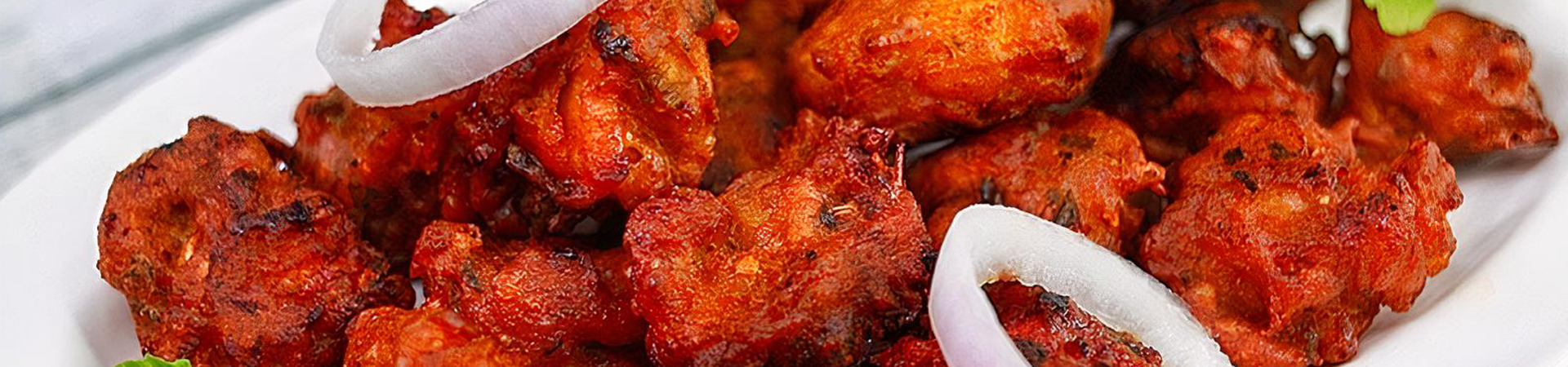 Fresh sliced red onions, marinated with suitable spiced gram flour batter and deep fried, served with mint sauce